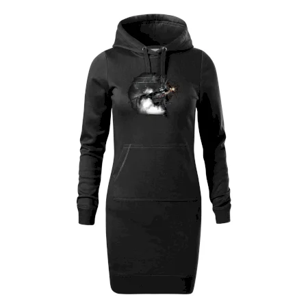 Dámske mikinové šaty MALFINI Snap 419 sú ideálnou voľbou pre ženy, ktoré hľadajú pohodlný a štýlový kúsok na voľný čas alebo každodenné nosenie. Ľahko vypasovaný strih s bočnými švami podčiarkuje ženskú siluetu, zatiaľ čo kapucňa s podšívkou a sťahovacou šnúrkou dodáva ležérny vzhľad. Šaty majú dĺžku nad kolená a sú vybavené našitým vreckom v štýle „klokanky“. Materiál je mäkký a príjemný na dotyk grâce à smesi bavlny a polyesteru s nepočesanou vnútornou stranou.