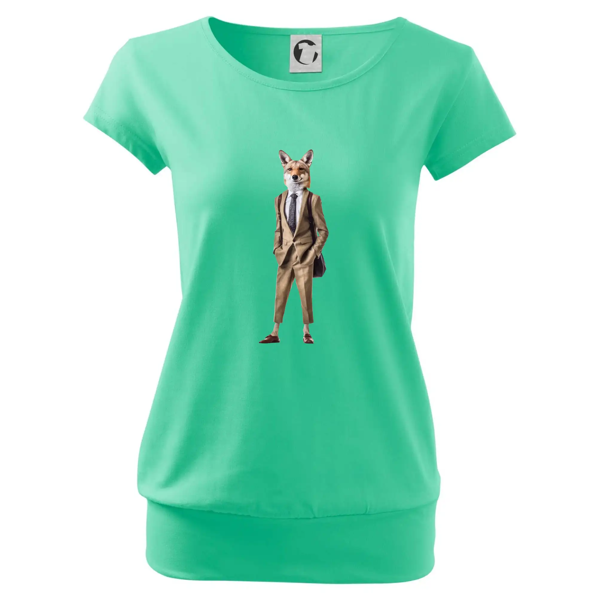 Trendové dámske tričko s veľmi krátkym rukávom, voľnejšieho strihu, v dolnom kraji všité do širokého lemu. Okrúhly priekrčník s úzkym lemom zo zhodného materiálu.