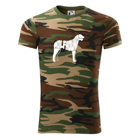 Tričko strednej gramáže vo farbách camouflage. Strih s bočnými švami. Lem priekrčníku z rebrového úpletu s prídavkom 5% elastanu. Vnútorná časť zadného priekrčníka začistená páskou vo farbe camouflage.