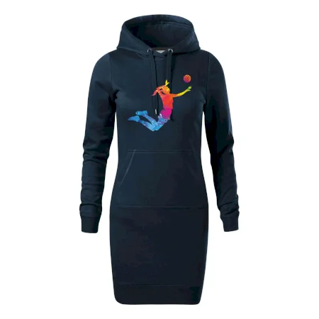Dámske mikinové šaty MALFINI Snap 419 sú ideálnou voľbou pre ženy, ktoré hľadajú pohodlný a štýlový kúsok na voľný čas alebo každodenné nosenie. Ľahko vypasovaný strih s bočnými švami podčiarkuje ženskú siluetu, zatiaľ čo kapucňa s podšívkou a sťahovacou šnúrkou dodáva ležérny vzhľad. Šaty majú dĺžku nad kolená a sú vybavené našitým vreckom v štýle „klokanky“. Materiál je mäkký a príjemný na dotyk grâce à smesi bavlny a polyesteru s nepočesanou vnútornou stranou.