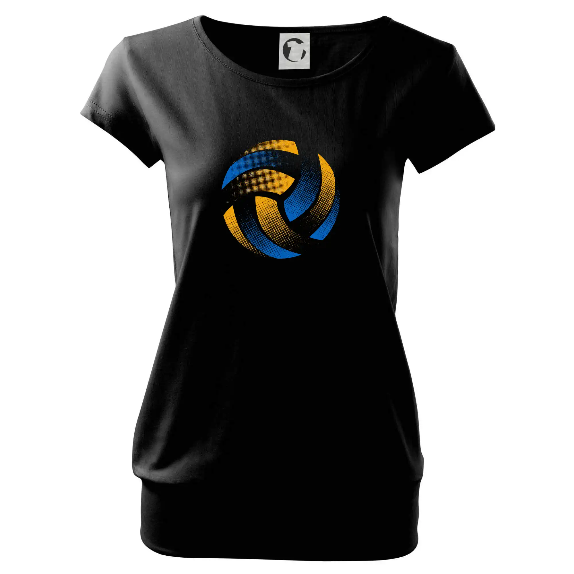 Trendové dámske tričko s veľmi krátkym rukávom, voľnejšieho strihu, v dolnom kraji všité do širokého lemu. Okrúhly priekrčník s úzkym lemom zo zhodného materiálu.