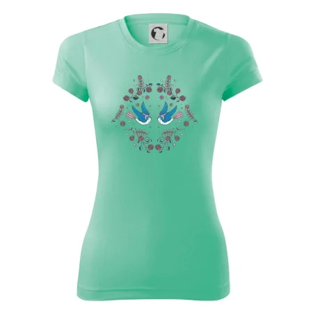 Vtáčiky a folklórne vzory? Áno, aj toto tu nájdeš: Tričko s motívom vtáčikov je vhodný darček pre každého milovníka folklóru a vtákov.