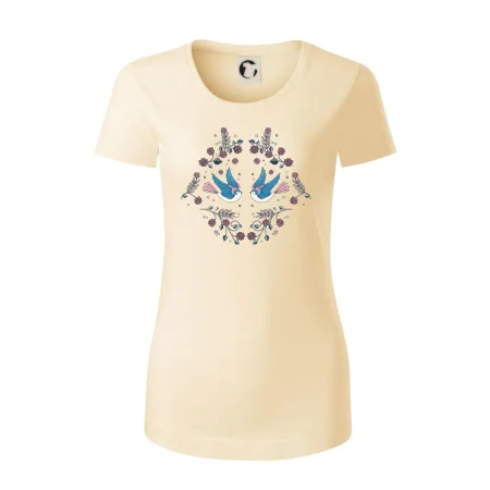 Vtáčiky a folklórne vzory? Áno, aj toto tu nájdeš: Tričko s motívom vtáčikov je vhodný darček pre každého milovníka folklóru a vtákov.