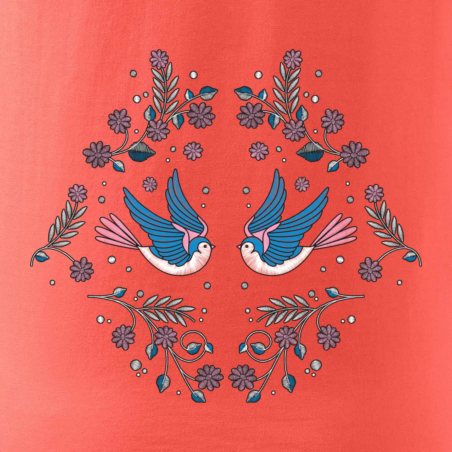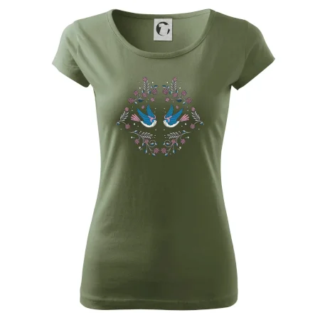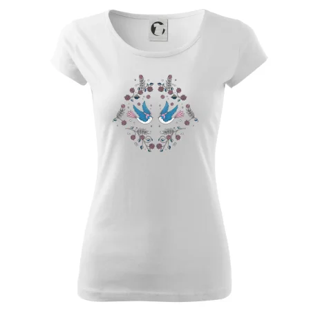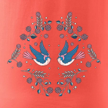 Vtáčiky a folklórne vzory? Áno, aj toto tu nájdeš: Tričko s motívom vtáčikov je vhodný darček pre každého milovníka folklóru a vtákov.