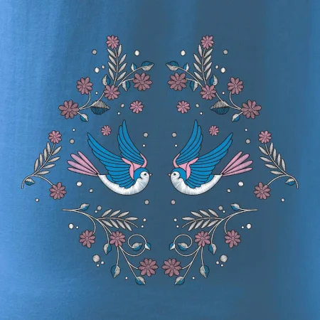 Vtáčiky a folklórne vzory? Áno, aj toto tu nájdeš: Tričko s motívom vtáčikov je vhodný darček pre každého milovníka folklóru a vtákov.