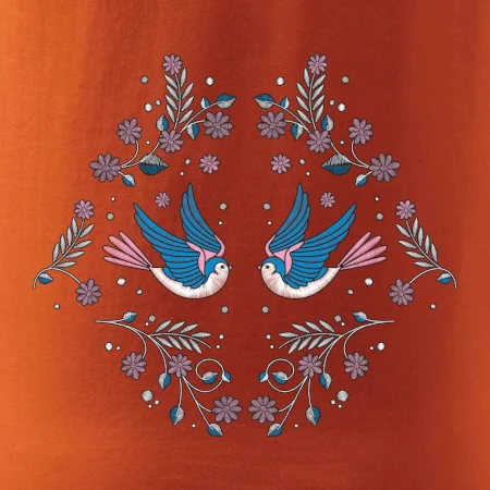Vtáčiky a folklórne vzory? Áno, aj toto tu nájdeš: Tričko s motívom vtáčikov je vhodný darček pre každého milovníka folklóru a vtákov.