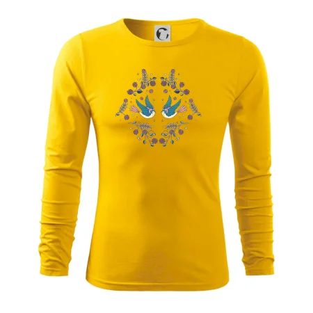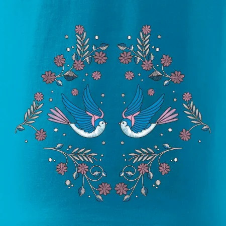Vtáčiky a folklórne vzory? Áno, aj toto tu nájdeš: Tričko s motívom vtáčikov je vhodný darček pre každého milovníka folklóru a vtákov.