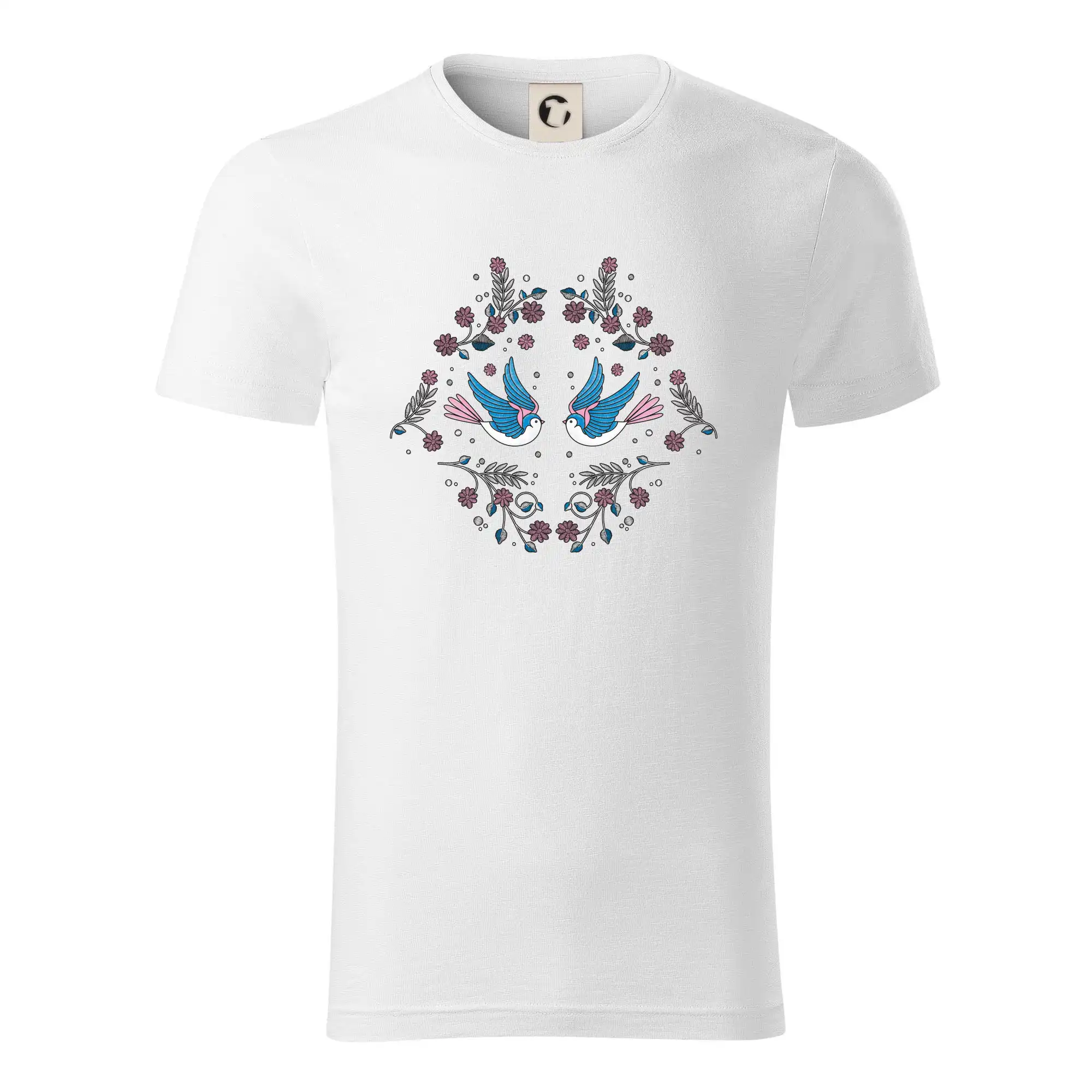 Vtáčiky a folklórne vzory? Áno, aj toto tu nájdeš: Tričko s motívom vtáčikov je vhodný darček pre každého milovníka folklóru a vtákov.