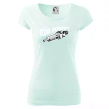 Trendové dámske tričko s veľmi krátkym rukávom, voľnejšieho strihu, v dolnom kraji všité do širokého lemu. Okrúhly priekrčník s úzkym lemom zo zhodného materiálu.