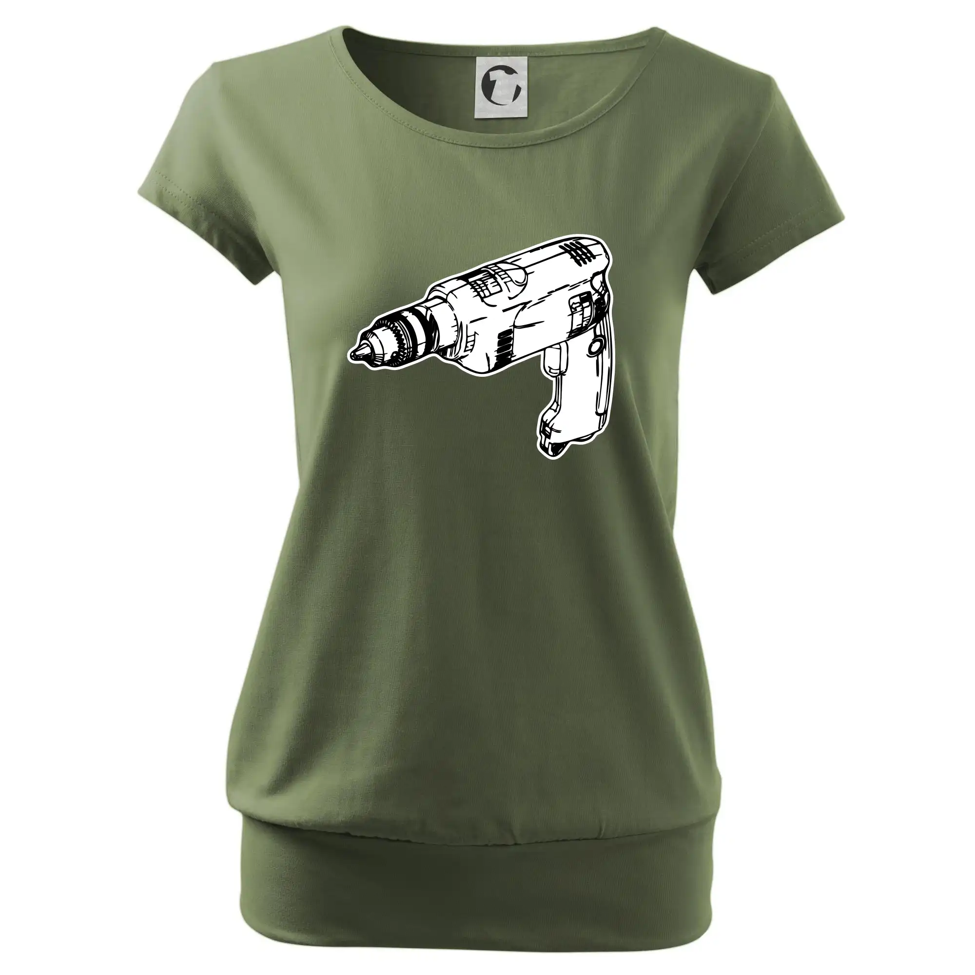 Trendové dámske tričko s veľmi krátkym rukávom, voľnejšieho strihu, v dolnom kraji všité do širokého lemu. Okrúhly priekrčník s úzkym lemom zo zhodného materiálu.