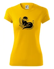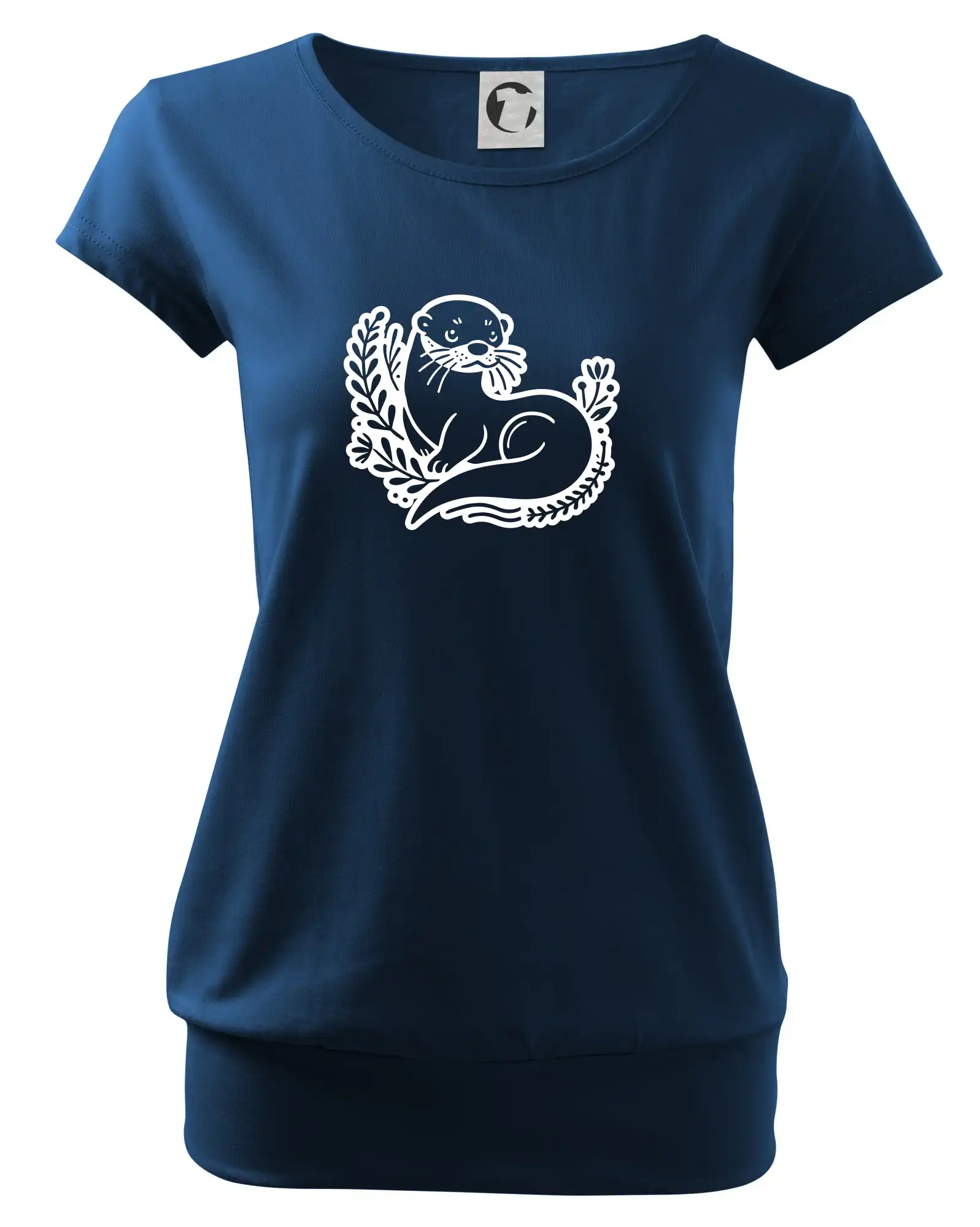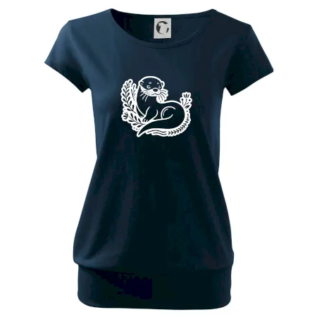 Trendové dámske tričko s veľmi krátkym rukávom, voľnejšieho strihu, v dolnom kraji všité do širokého lemu. Okrúhly priekrčník s úzkym lemom zo zhodného materiálu.