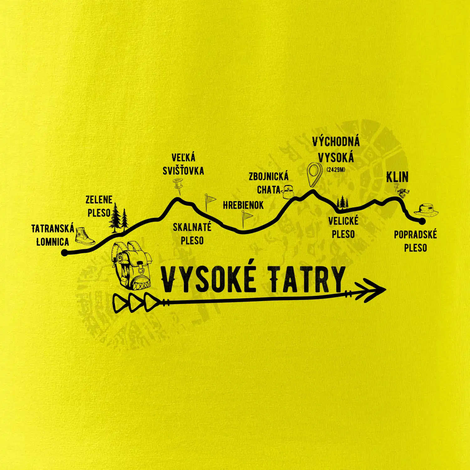Profil cesty naprieč Vysokými Tatrami.
