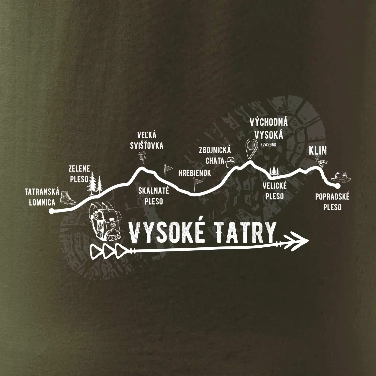 Profil cesty naprieč Vysokými Tatrami.