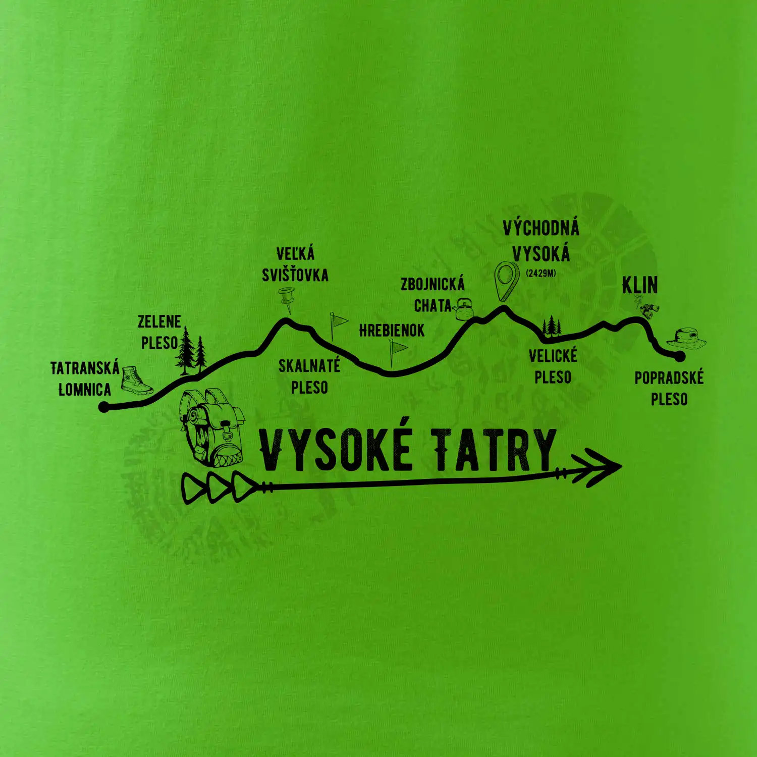 Profil cesty naprieč Vysokými Tatrami.