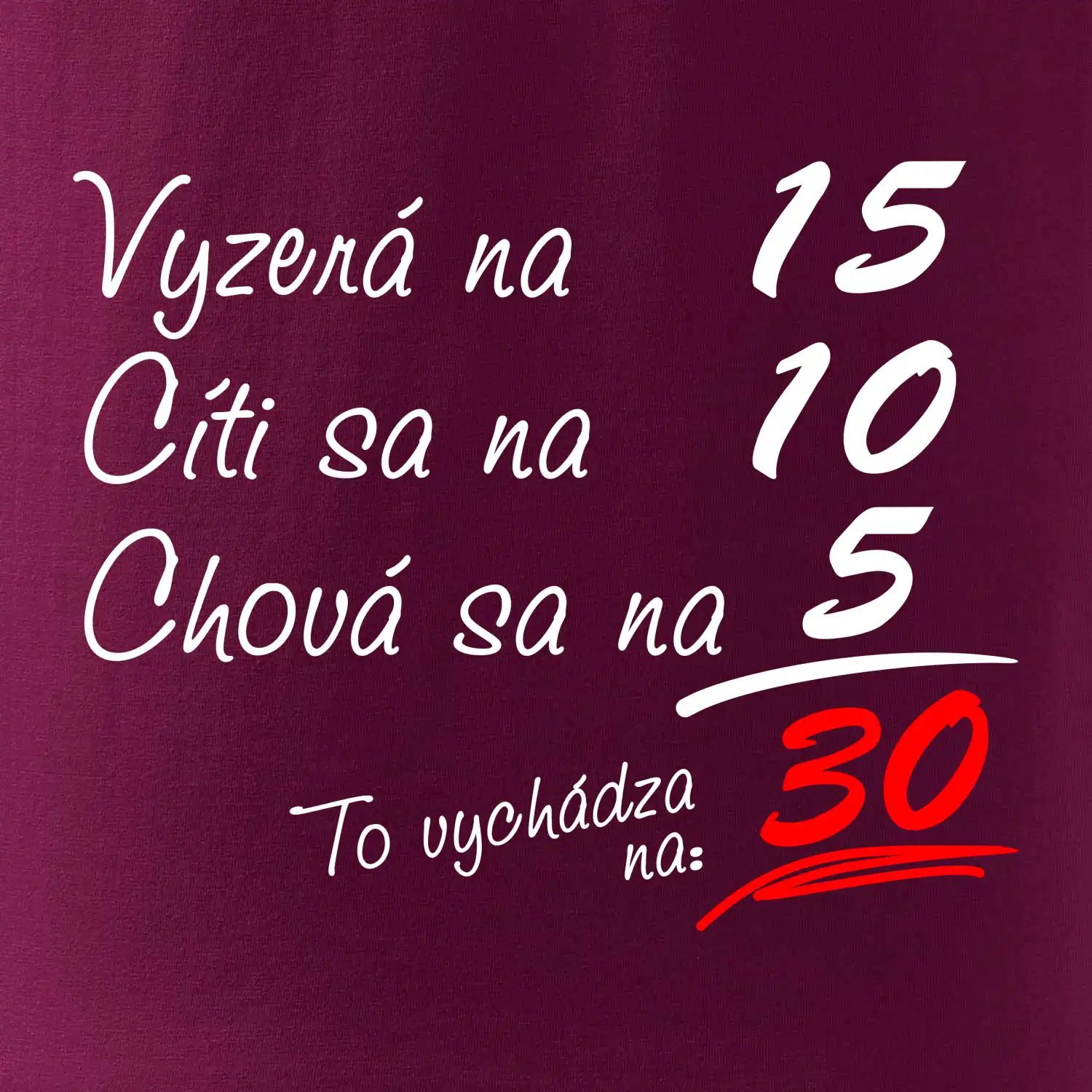 Tričko na narodeniny pre všetkých, ktorí sa cítia na menej než v skutočnosti majú. Pre všetkých, ktorí majú zmysel pre humor a majú radi vtipné darčeky.