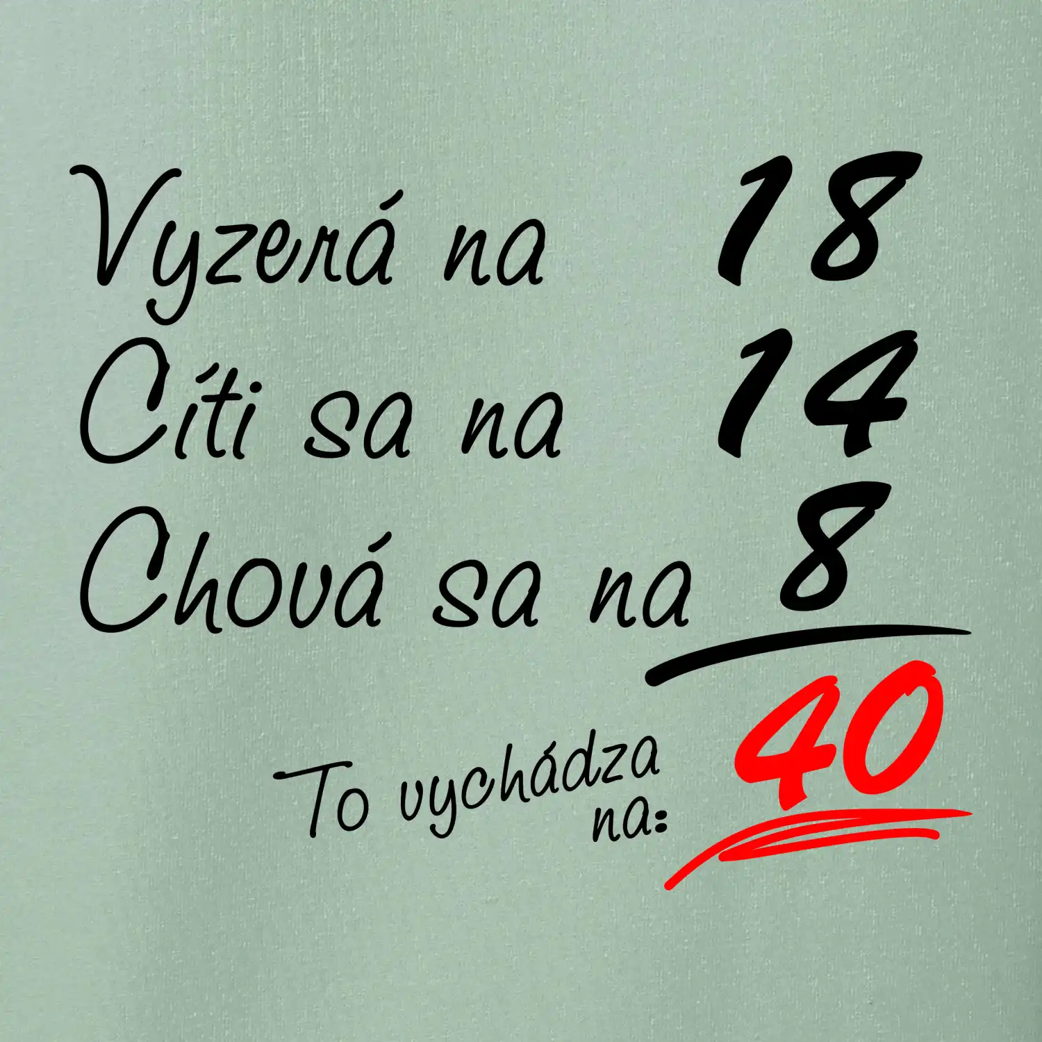 Tričko na narodeniny pre všetkých, ktorí sa cítia na menej než v skutočnosti majú. Pre všetkých, ktorí majú zmysel pre humor a majú radi vtipné darčeky.