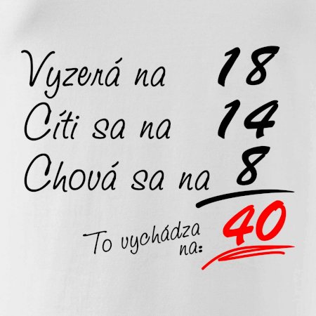 Tričko na narodeniny pre všetkých, ktorí sa cítia na menej než v skutočnosti majú. Pre všetkých, ktorí majú zmysel pre humor a majú radi vtipné darčeky.