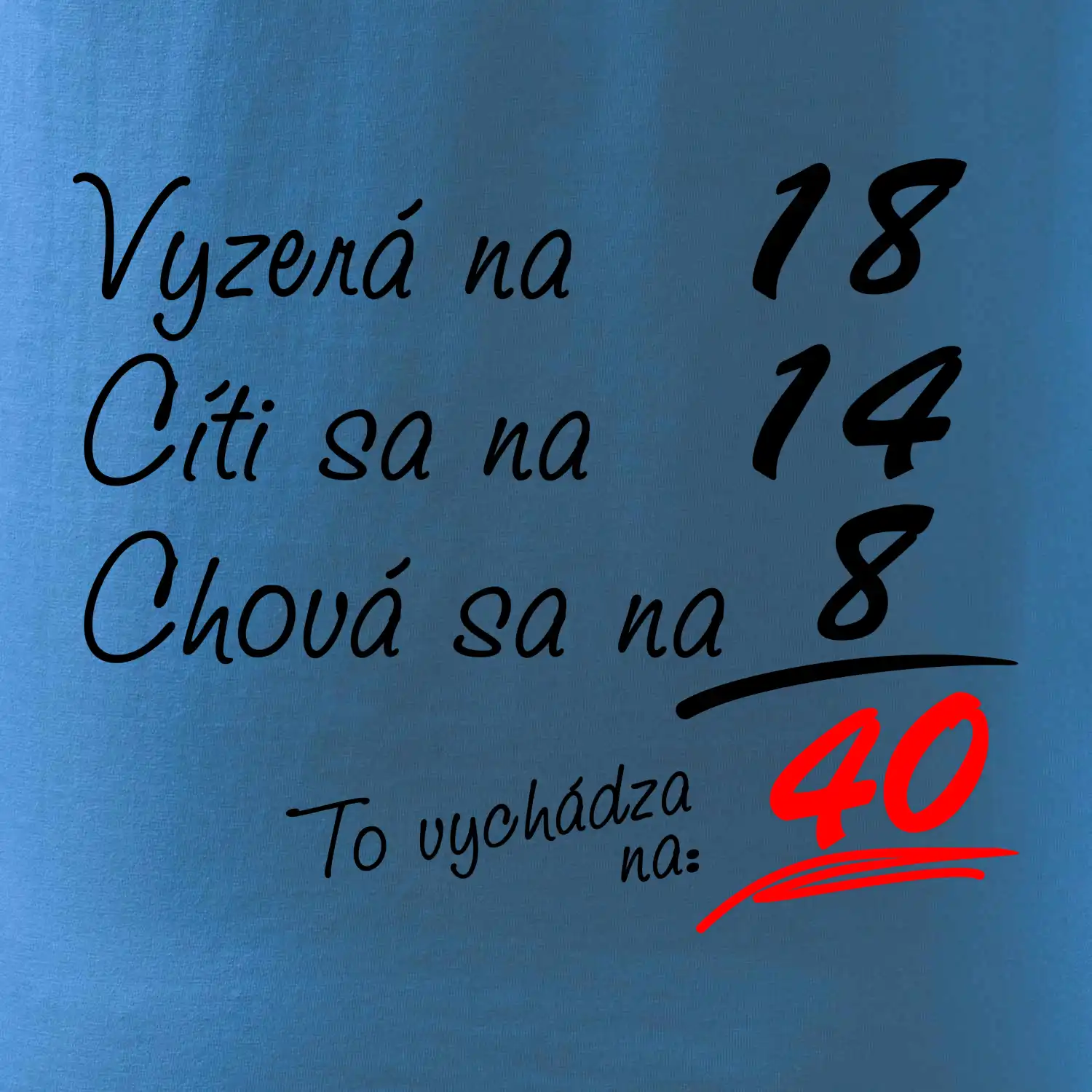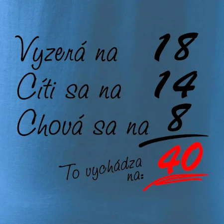 Tričko na narodeniny pre všetkých, ktorí sa cítia na menej než v skutočnosti majú. Pre všetkých, ktorí majú zmysel pre humor a majú radi vtipné darčeky.