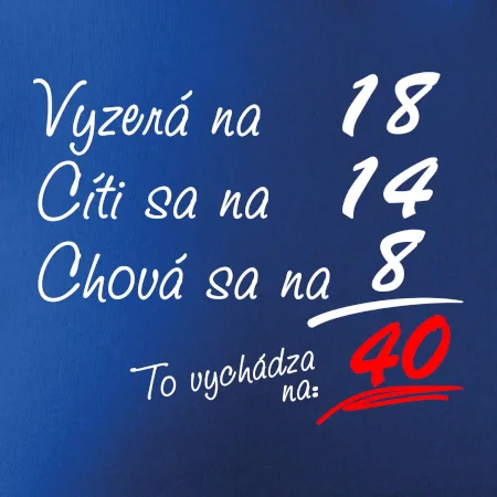 Tričko na narodeniny pre všetkých, ktorí sa cítia na menej než v skutočnosti majú. Pre všetkých, ktorí majú zmysel pre humor a majú radi vtipné darčeky.