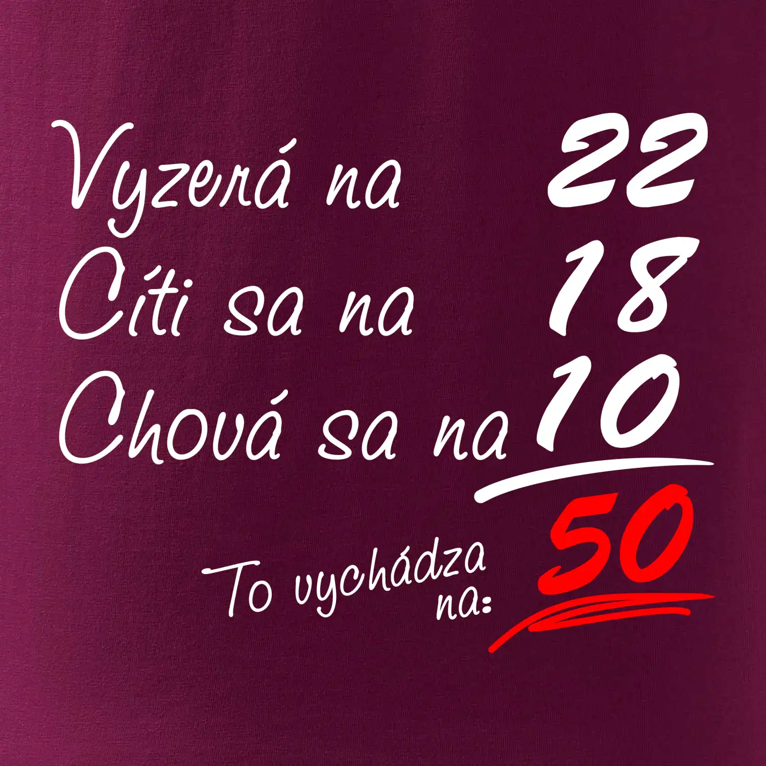 Tričko na narodeniny pre všetkých, ktorí sa cítia na menej než v skutočnosti majú. Pre všetkých, ktorí majú zmysel pre humor a majú radi vtipné darčeky.