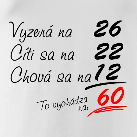 Tričko na narodeniny pre všetkých, ktorí sa cítia na menej než v skutočnosti majú. Pre všetkých, ktorí majú zmysel pre humor a majú radi vtipné darčeky.