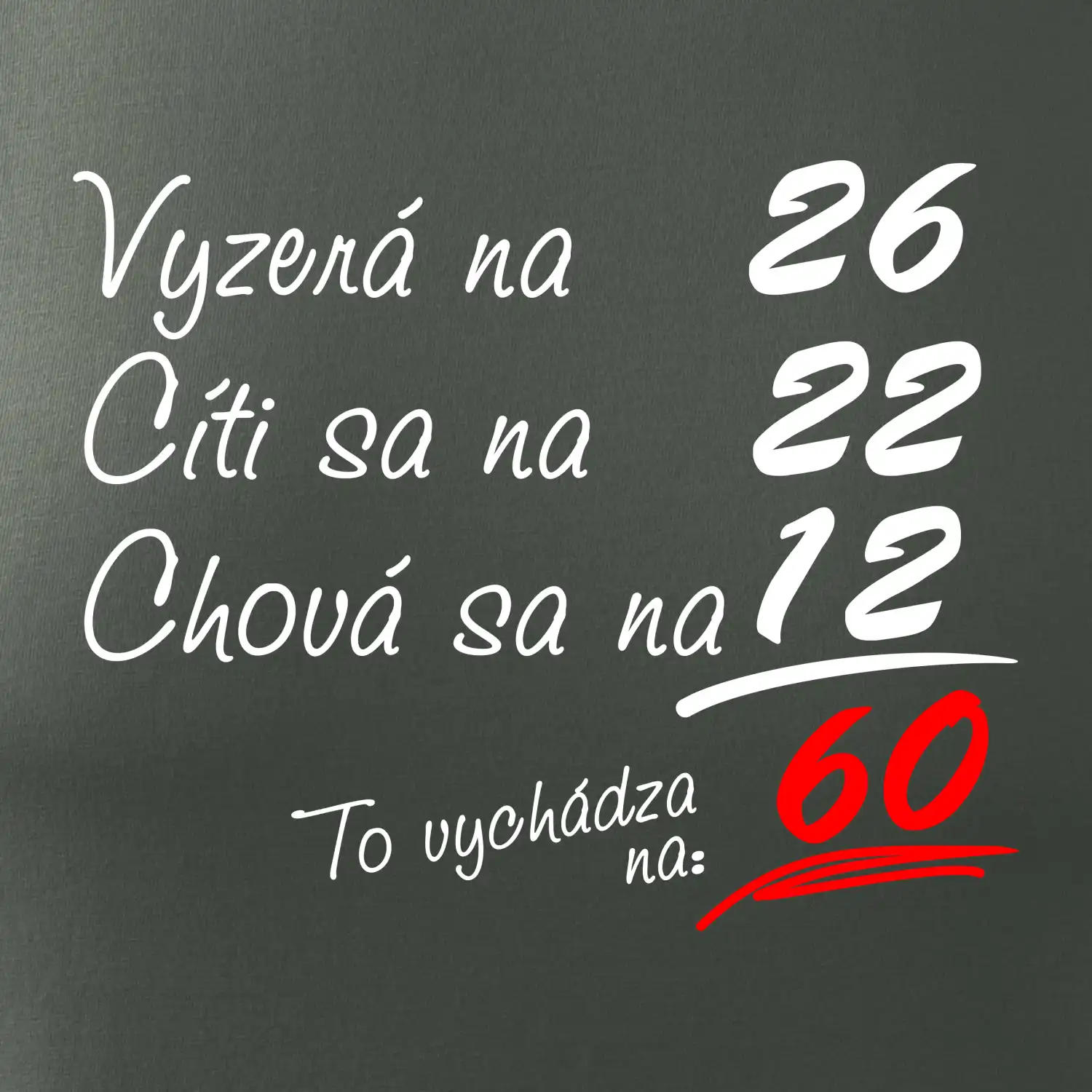 Tričko na narodeniny pre všetkých, ktorí sa cítia na menej než v skutočnosti majú. Pre všetkých, ktorí majú zmysel pre humor a majú radi vtipné darčeky.