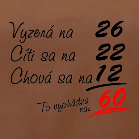 Tričko na narodeniny pre všetkých, ktorí sa cítia na menej než v skutočnosti majú. Pre všetkých, ktorí majú zmysel pre humor a majú radi vtipné darčeky.