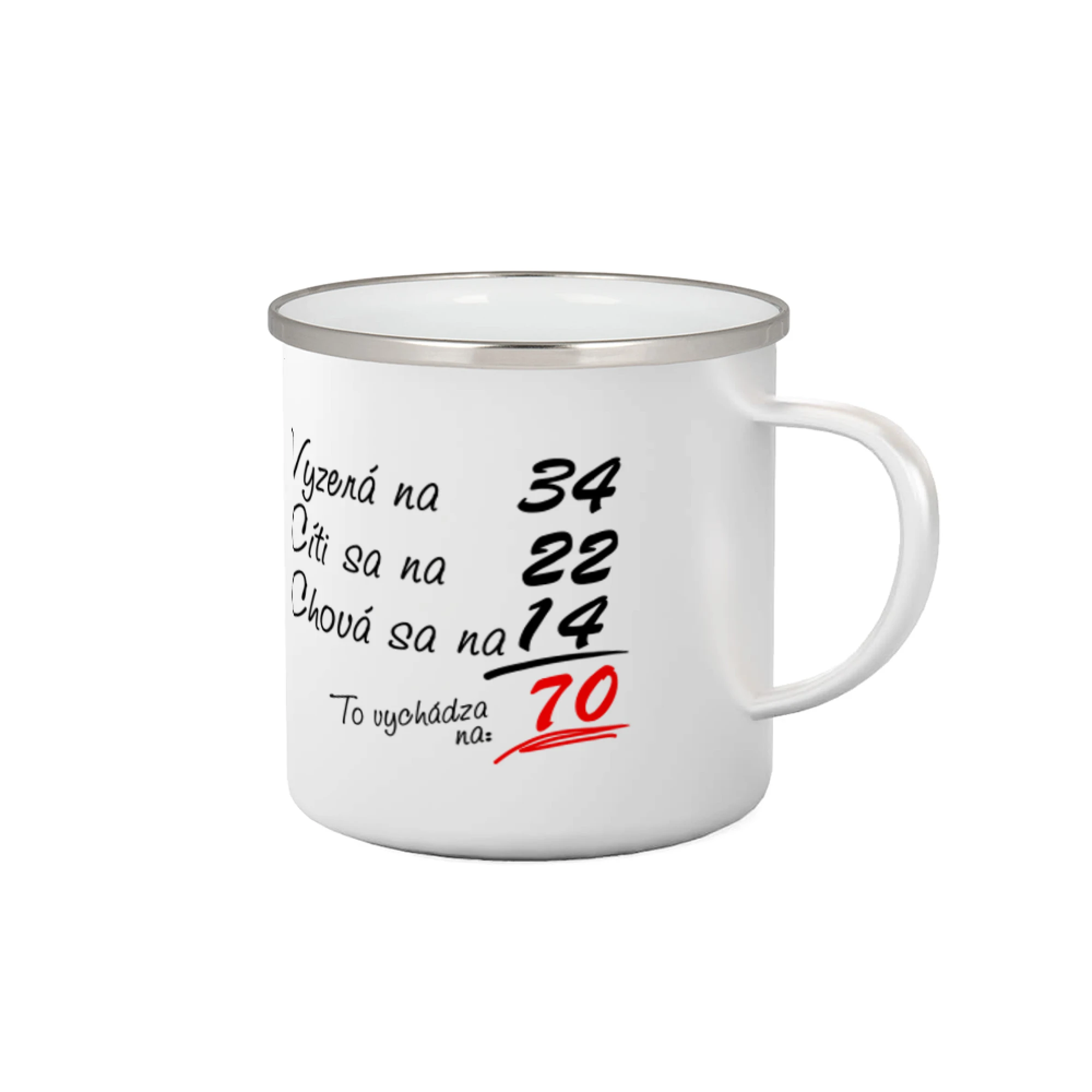 Výrobný proces smaltovaných šálok nevyhnutne zahŕňa určité nerovnosti. Tie sa prejavujú v podobe miernych otlakov a jamiek (bez straty smaltu) a malých čiernych škvŕn na povrchu hrnčeka a na rukoväti. Tieto nerovnosti podčiarkujú retro vzhľad šálok a nie sú dôvodom na reklamáciu.