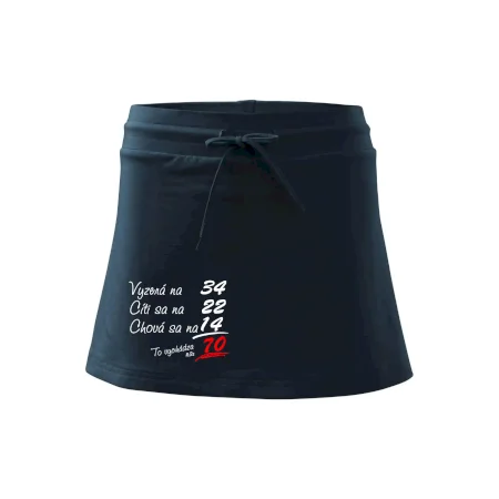Dámska kraťasová sukňa MALFINI Two in One 604 je perfektnou kombináciou sukne a šortiek, ideálna na šport, voľný čas alebo ležérne nosenie. Vďaka prídavku elastanu si sukňa zachováva tvar a ponúka pohodlie pri pohybe. Krátky strih do tvaru „A“ a široký elastický pás so sťahovacou šnúrkou zabezpečujú voľnosť a prispôsobenie.