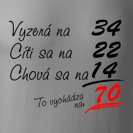 Tričko na narodeniny pre všetkých, ktorí sa cítia na menej než v skutočnosti majú. Pre všetkých, ktorí majú zmysel pre humor a majú radi vtipné darčeky.