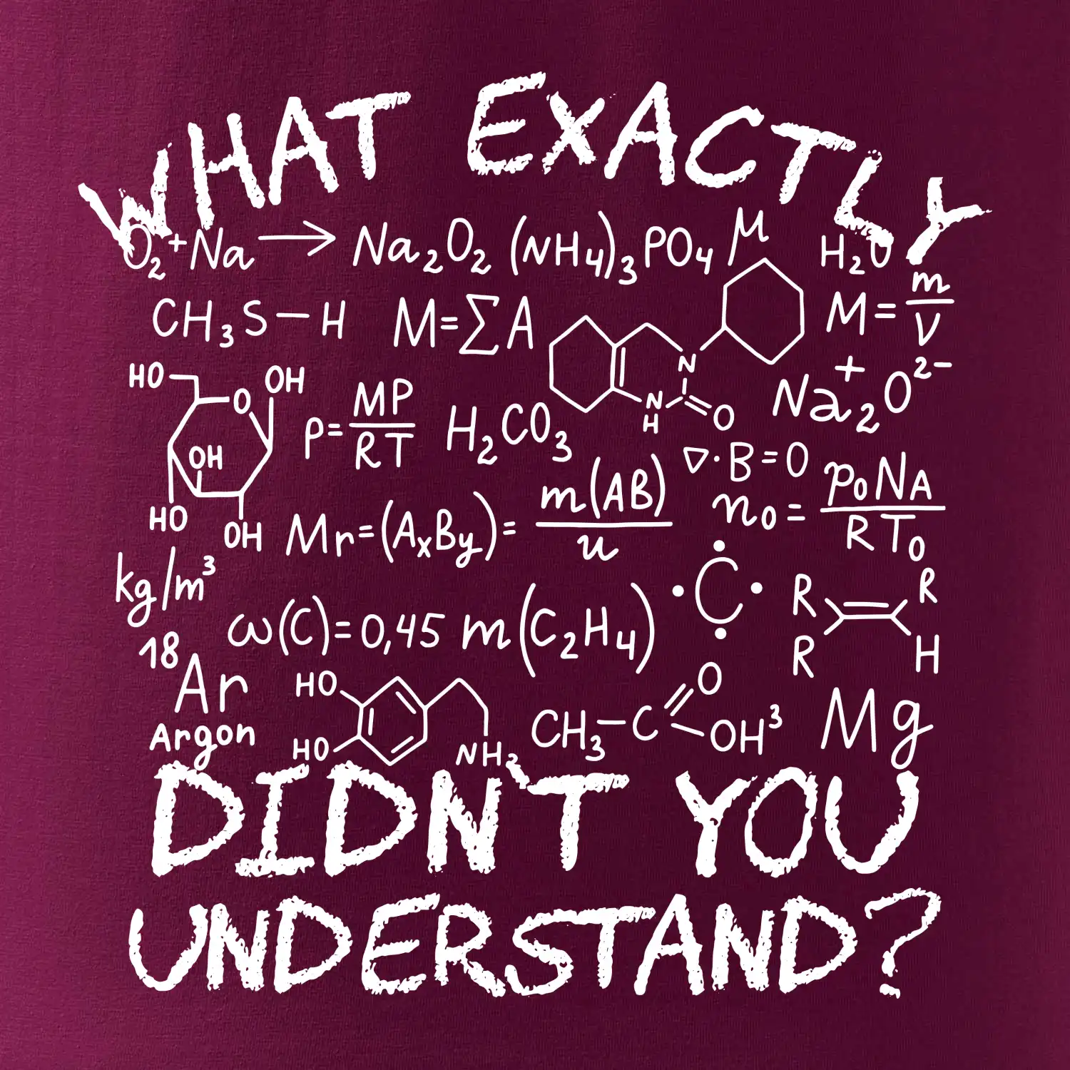 Taky ti přijde občas chemie tak složitá? Máme skvělé triko pro chemikáře i chemikářku a nebo i studenta chemie, který ví, že chemie není žádná sranda. Máme triko v anglické, ale i české verzi.