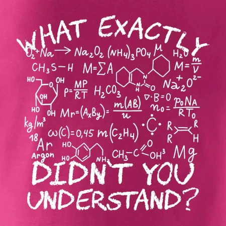 Taky ti přijde občas chemie tak složitá? Máme skvělé triko pro chemikáře i chemikářku a nebo i studenta chemie, který ví, že chemie není žádná sranda. Máme triko v anglické, ale i české verzi.
