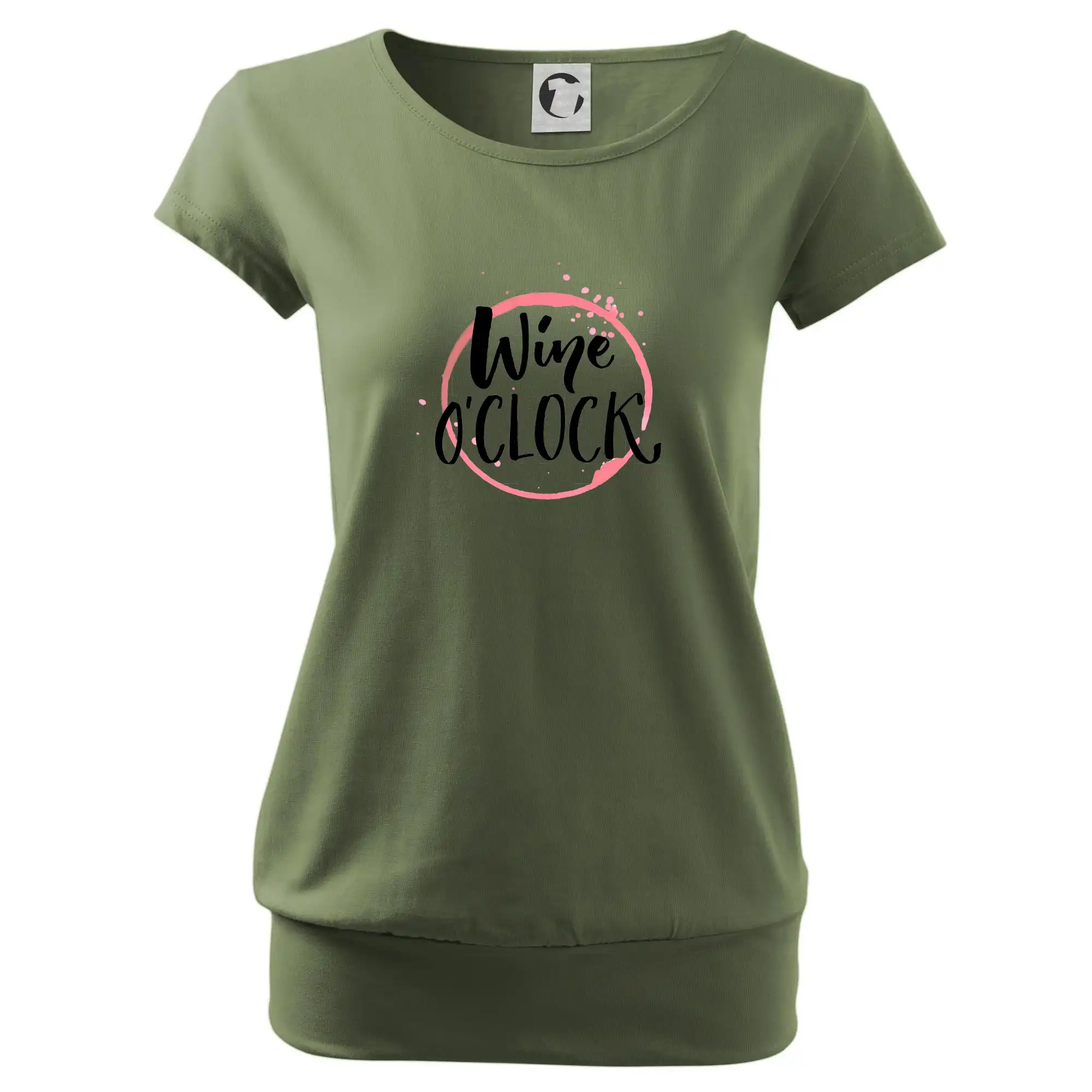 Trendové dámske tričko s veľmi krátkym rukávom, voľnejšieho strihu, v dolnom kraji všité do širokého lemu. Okrúhly priekrčník s úzkym lemom zo zhodného materiálu.