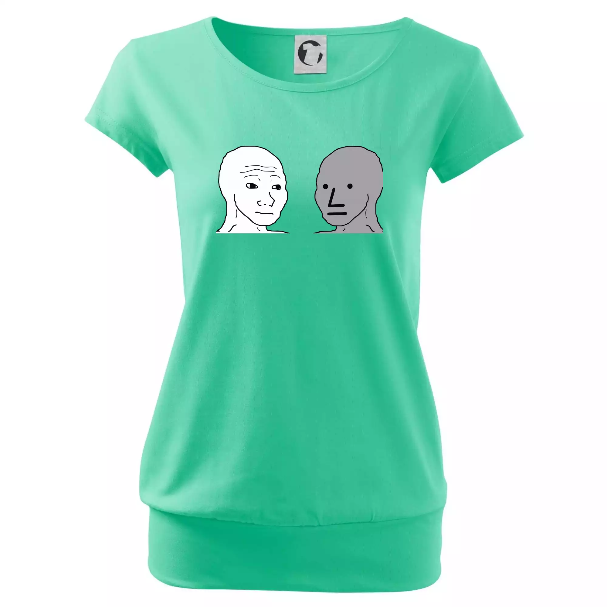 Trendové dámske tričko s veľmi krátkym rukávom, voľnejšieho strihu, v dolnom kraji všité do širokého lemu. Okrúhly priekrčník s úzkym lemom zo zhodného materiálu.