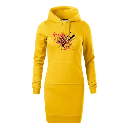 Dámske mikinové šaty MALFINI Snap 419 sú ideálnou voľbou pre ženy, ktoré hľadajú pohodlný a štýlový kúsok na voľný čas alebo každodenné nosenie. Ľahko vypasovaný strih s bočnými švami podčiarkuje ženskú siluetu, zatiaľ čo kapucňa s podšívkou a sťahovacou šnúrkou dodáva ležérny vzhľad. Šaty majú dĺžku nad kolená a sú vybavené našitým vreckom v štýle „klokanky“. Materiál je mäkký a príjemný na dotyk grâce à smesi bavlny a polyesteru s nepočesanou vnútornou stranou.