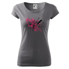 Trendové dámske tričko s veľmi krátkym rukávom, voľnejšieho strihu, v dolnom kraji všité do širokého lemu. Okrúhly priekrčník s úzkym lemom zo zhodného materiálu.