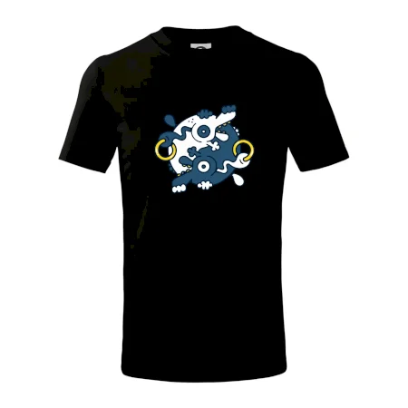 Detské tričko strednej gramáže s bočnými švami. Úzky priekrčník s prídavkom 5% elastanu. Vnútorná časť zadného priekrčníka začistená tkanou páskou. Spevnený ramenný šev.