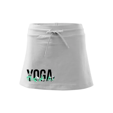 Dámska kraťasová sukňa MALFINI Two in One 604 je perfektnou kombináciou sukne a šortiek, ideálna na šport, voľný čas alebo ležérne nosenie. Vďaka prídavku elastanu si sukňa zachováva tvar a ponúka pohodlie pri pohybe. Krátky strih do tvaru „A“ a široký elastický pás so sťahovacou šnúrkou zabezpečujú voľnosť a prispôsobenie.