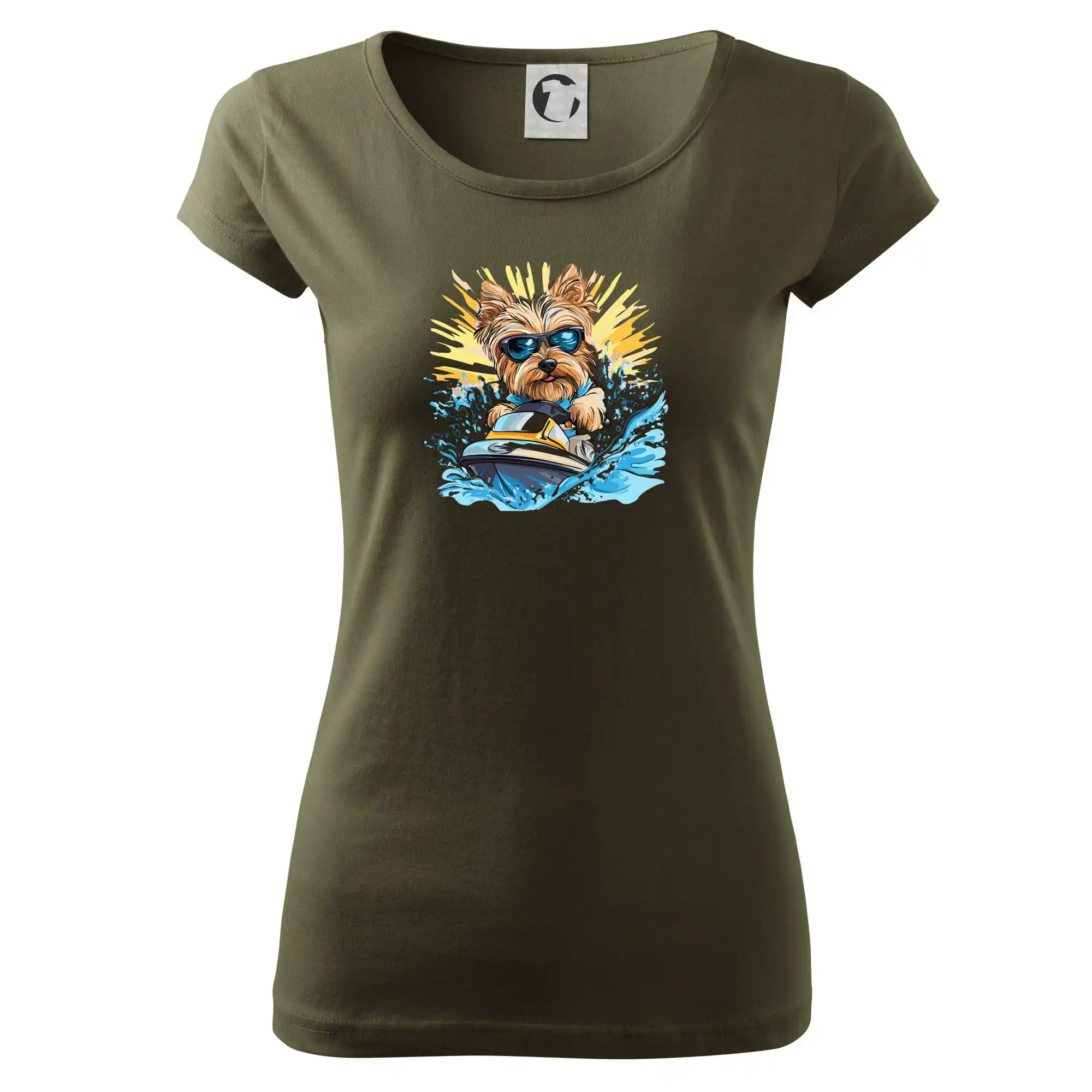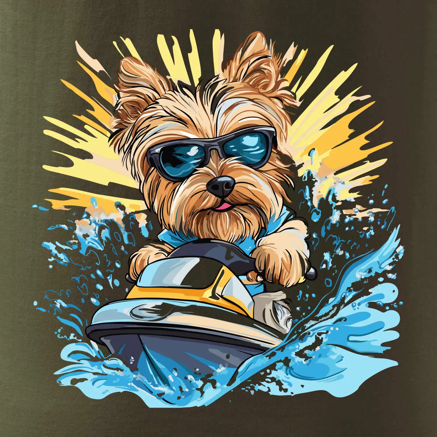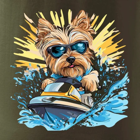 Yorkšírsky teriér na vodnom skútri