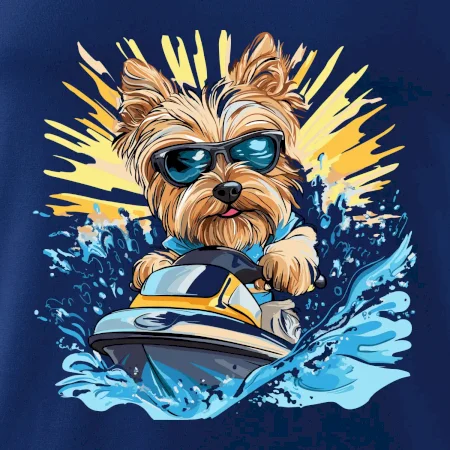 Yorkšírsky teriér na vodnom skútri