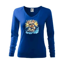 Tolerantnejšie priliehavý dámsky strih, ktorý je vhodný pre všetky typy postavy, ideálna dĺžka rukávov a konzervatívny výstrih zakončený rebrovaním, ktoré skvele drží tvar.