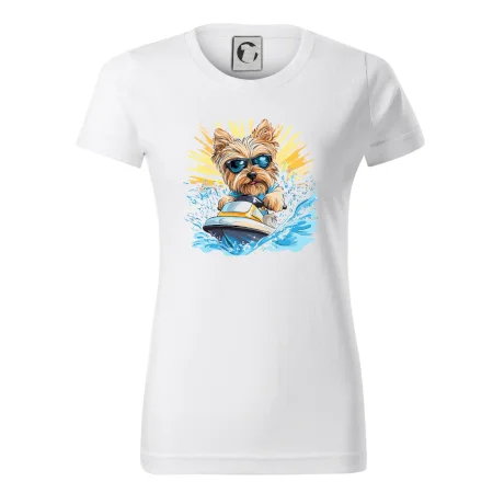 Yorkšírsky teriér na vodnom skútri
