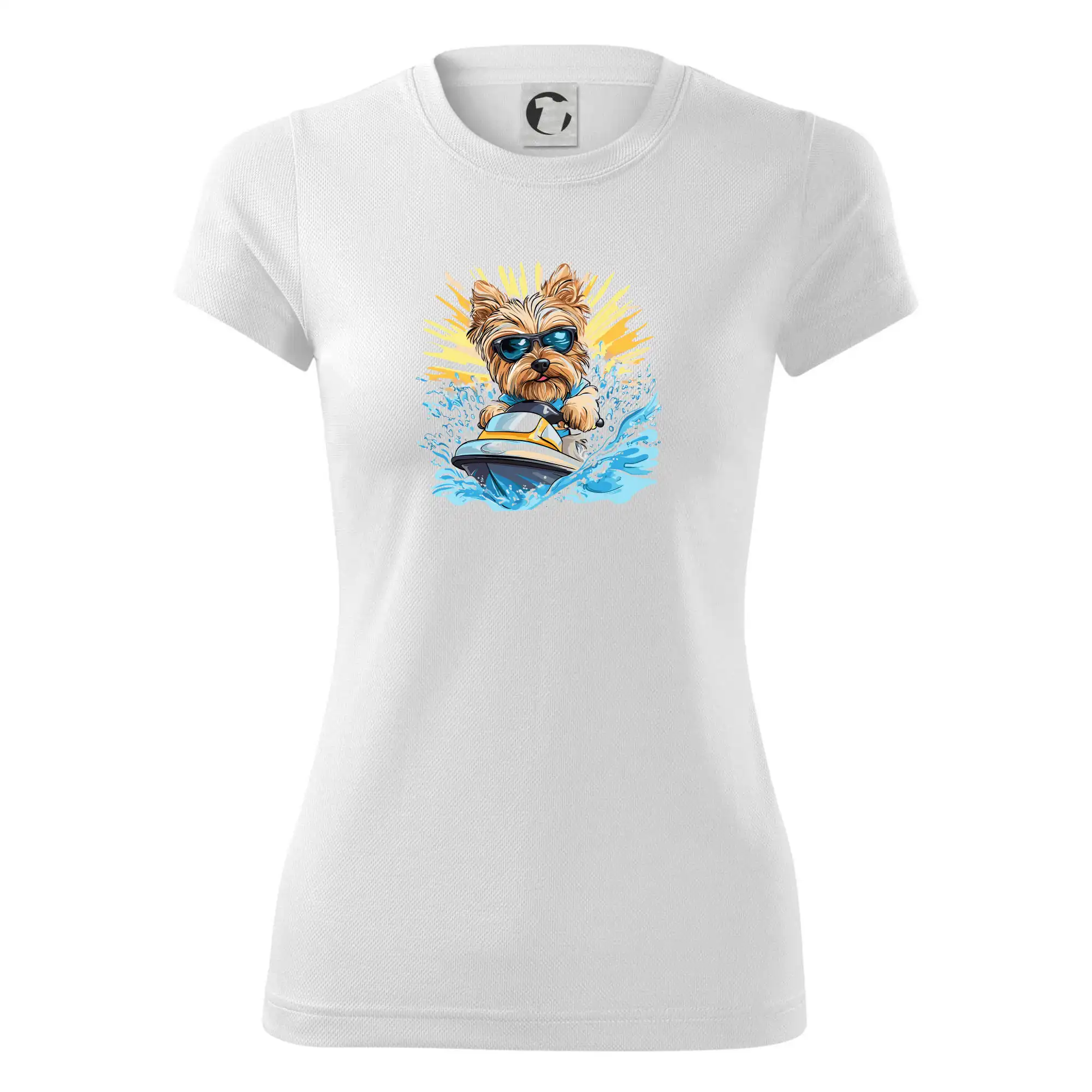 Yorkšírsky teriér na vodnom skútri