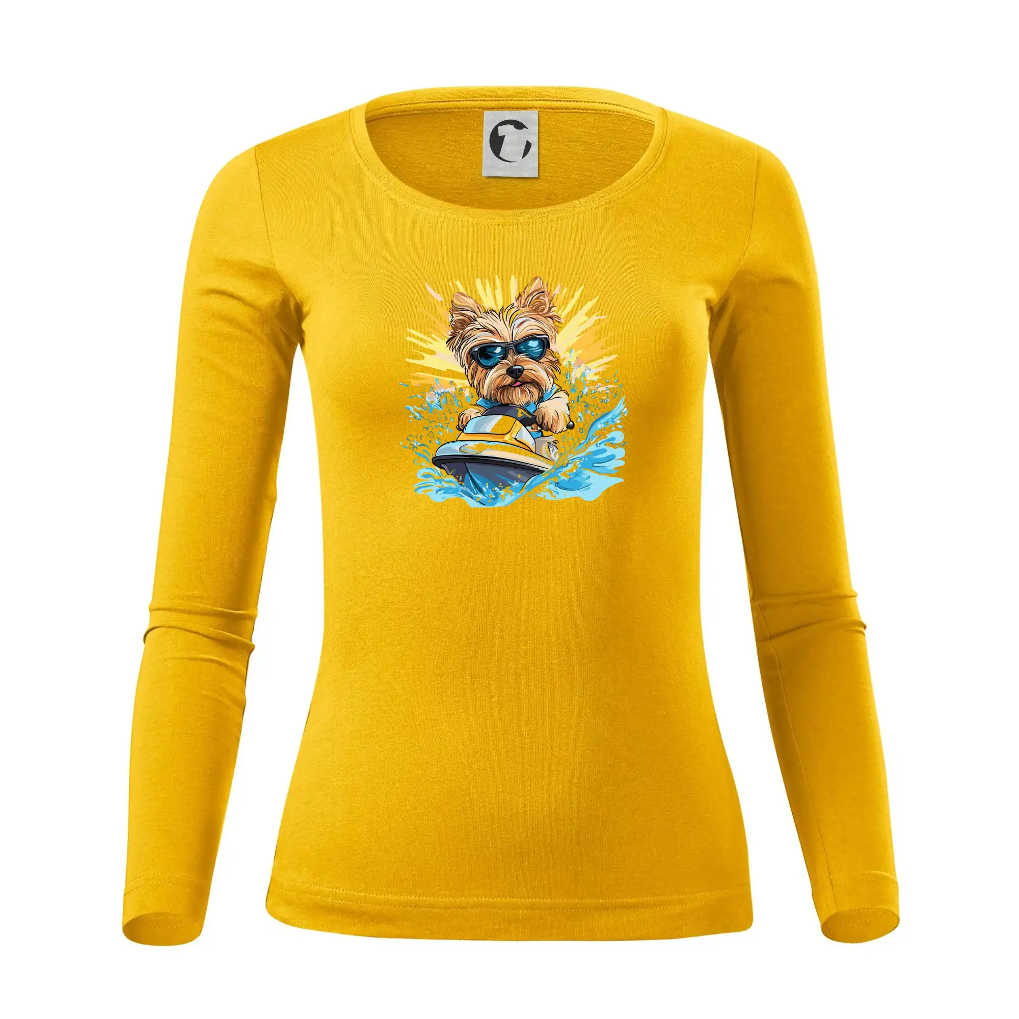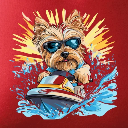 Yorkšírsky teriér na vodnom skútri