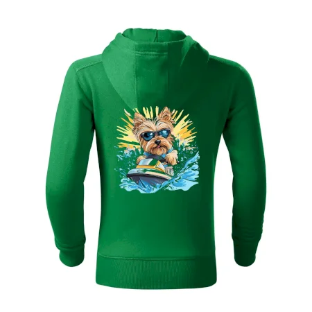 Yorkšírsky teriér na vodnom skútri