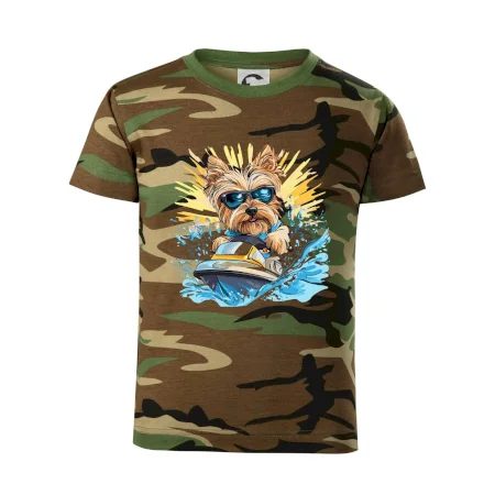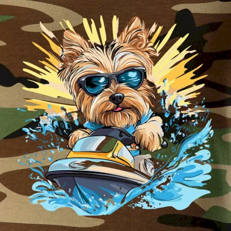 Yorkšírsky teriér na vodnom skútri