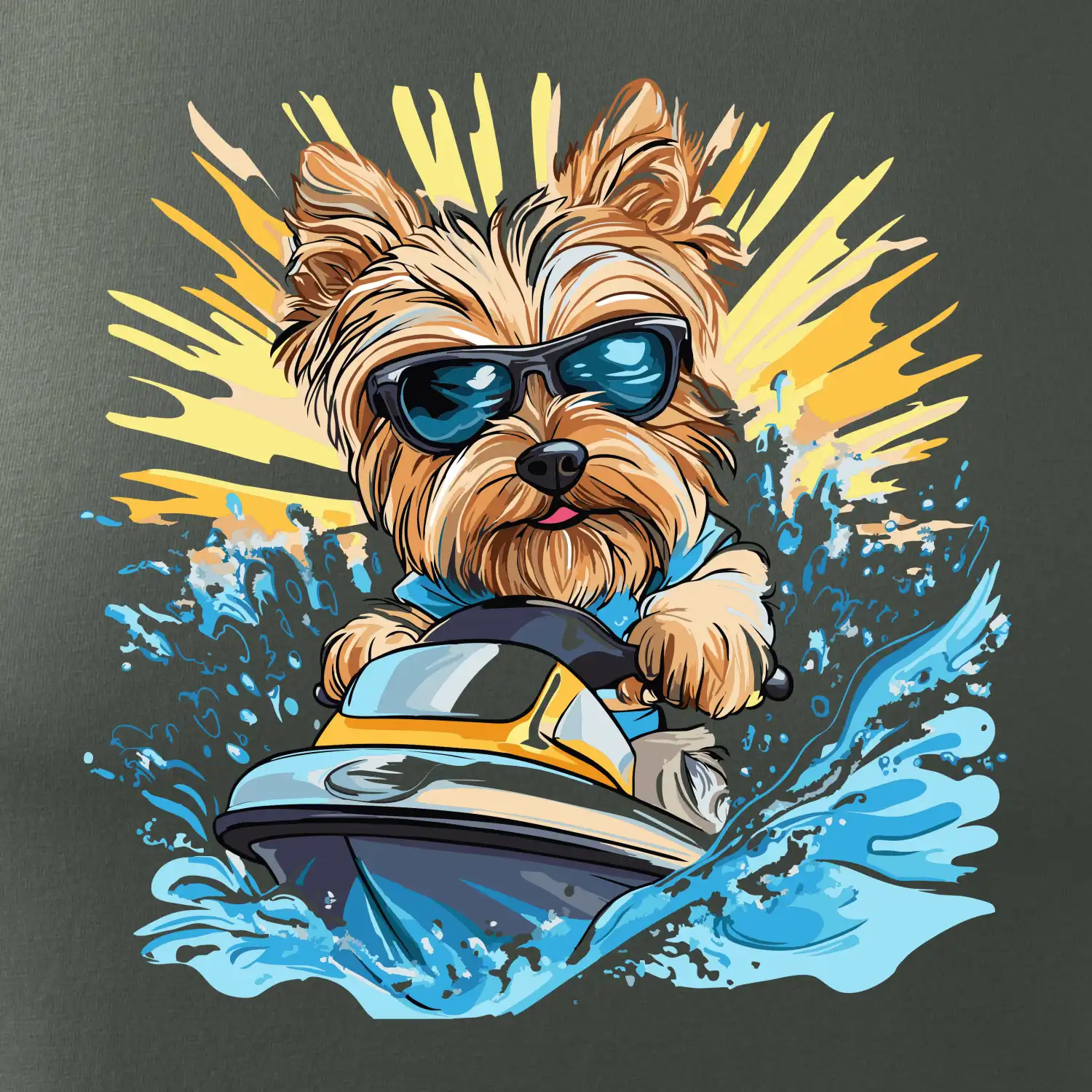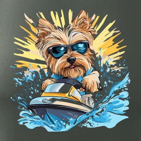 Yorkšírsky teriér na vodnom skútri