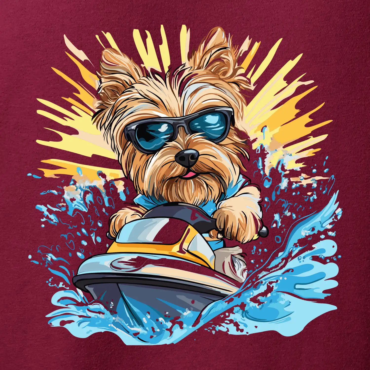 Yorkšírsky teriér na vodnom skútri