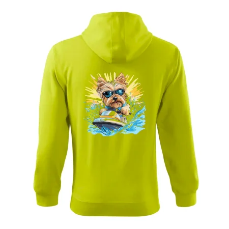 Yorkšírsky teriér na vodnom skútri