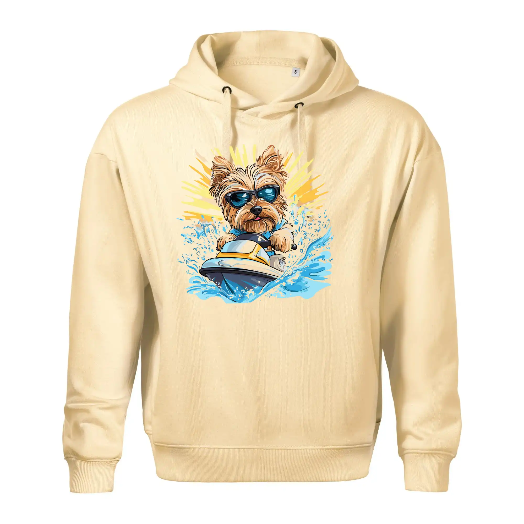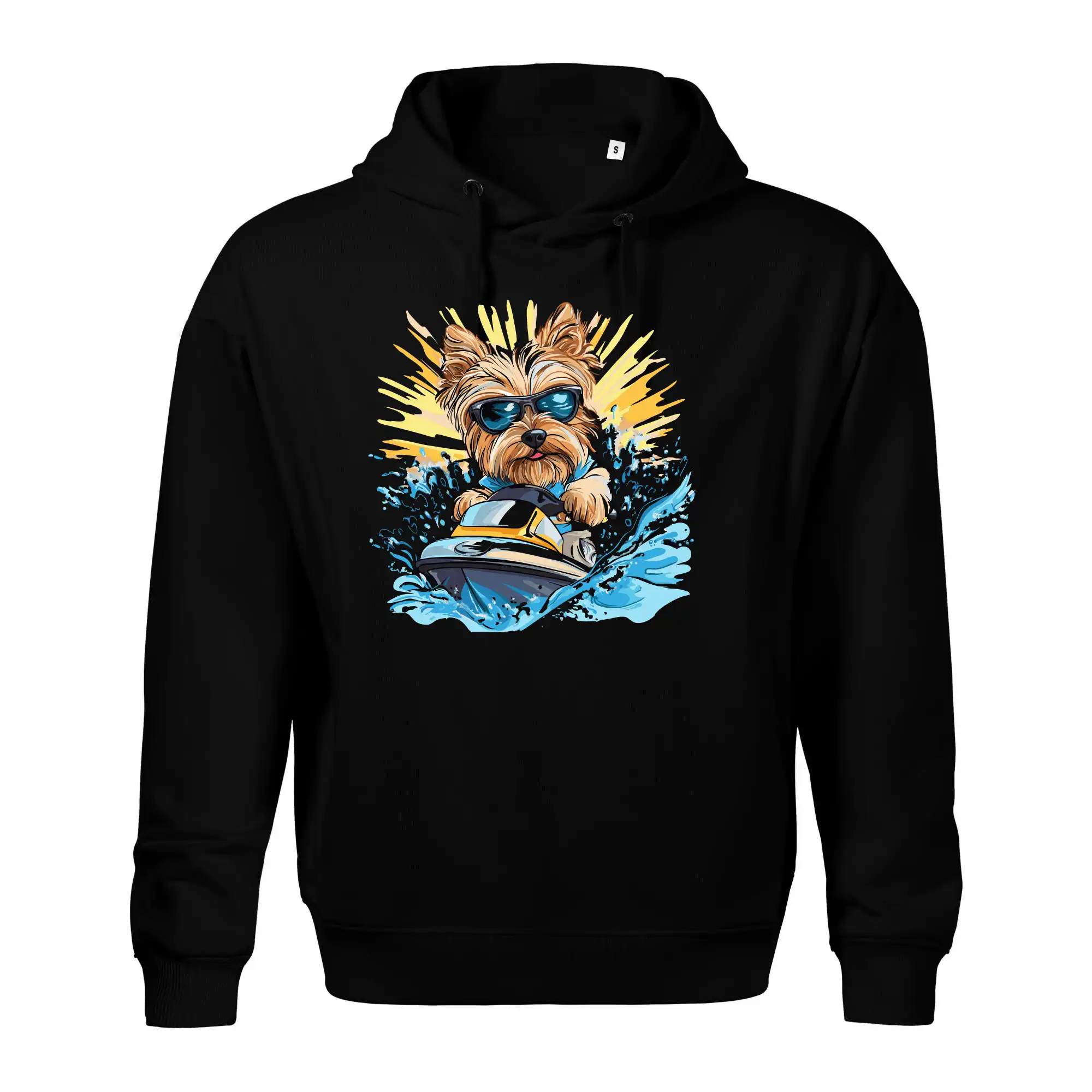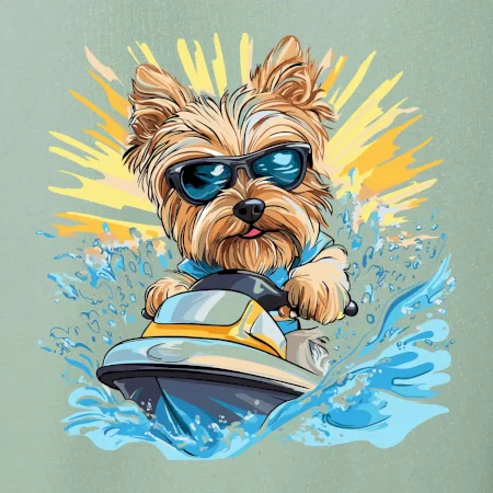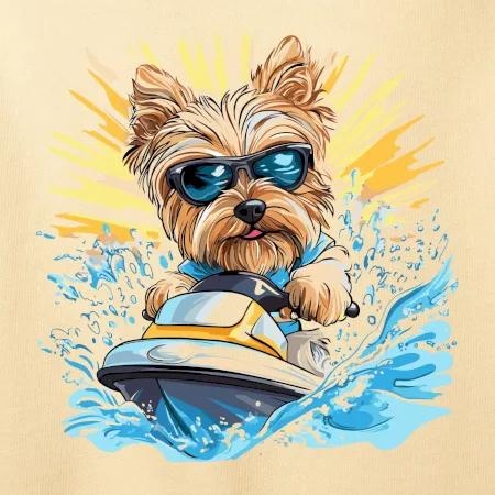 Yorkšírsky teriér na vodnom skútri